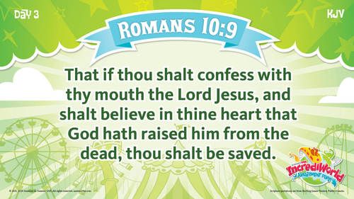 If you confess / with your mouth / that Jesus is Lord / and believe in your heart / that God raised him from the dead, / you will be saved. / Romans 10:9
